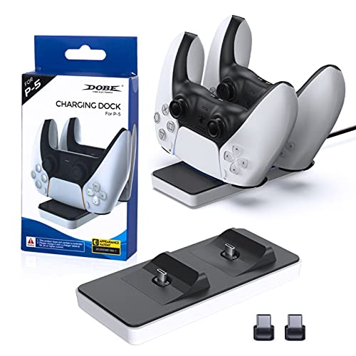 DOBE PS5 Dual Charging Dock for Sony Playstation 5 Wireless Controller Port Joystick Gamepad Fast Charger Stand Charging BaseFeatures:Dual controller chargerCharge 2 PS5 controllers simultaneouslyFast ChargingStable and not easy to fallIntelligent protectionUse intelligent technology to manage output, protect overcharge intelligently.OTC ProtectionOVP ProtectionFast ChargingType-C Plug ChargingType-C plug charging, low standby power consumption, save power and protect environmentPackage of TP5-0505 includes:1x PS5 Dual Controller Charging Dock 1x Type-C Charge Cable 2x Type-C adapters1x ManualPackage of TP5-0504 includes:1x PS5 Dual Controller Charging Dock 1x Type-C Charge Cable 1x ManualNotice:1. This product dose not contain a controller.2. Please charge it with a charger rated at 5V, 2A or higher current.Item specifics:Origin: CN(Origin)Sony model: playstationWith usb: NOIs customized: NOModel number: TP5-0505Name: Dual Charging Dock StationFeature 1: For PlayStation 5 ControllerFeature 2: Fast chargeFeature 3: Detachable charging portFeature 4: Type-C adapterFeature 5: Type-C cableFeature 6: 600mAh OutputProduct size: 142x65x27 mmPackage size: 146x90x32 mm